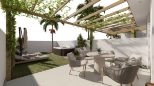 •Terraza privada y jardín exclusivo, con opción de instalar un jacuzzi