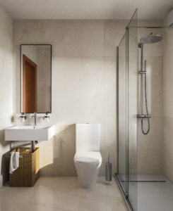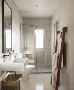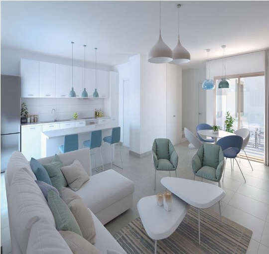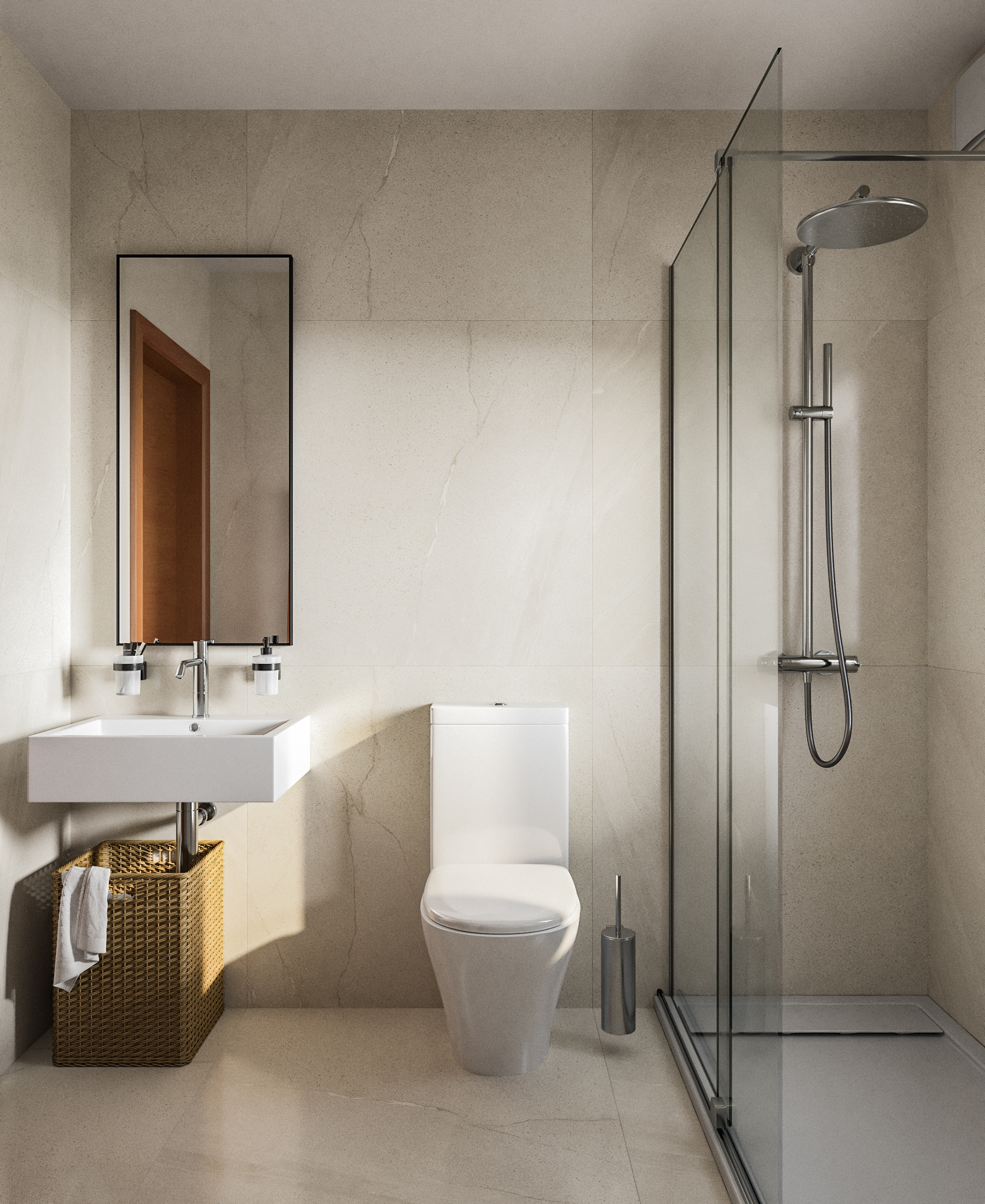 Con acabados de alta calidad, les damos la posibilidad de elegir según su preferencia entre varios colores del pavimento y azulejos de los cuartos de baño. Cada vivienda cuenta con la instalación de AEROTÉRMIA, que es una tecnología limpia que extrae gratuitamente hasta un 77% de la energía del aire ambiental para proporcionar refrigeración en verano, calefacción en invierno y agua caliente durante todo el año.
