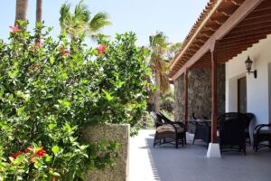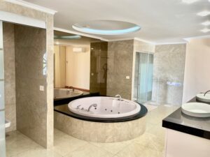 El exterior de la propiedad es un auténtico refugio de serenidad, con dos piscinas —una de ellas de agua salada—, diversas zonas de descanso y un jardín con exuberante vegetación subtropical de bajo mantenimiento. La villa también dispone de aparcamiento privado para 2-3 vehículos.