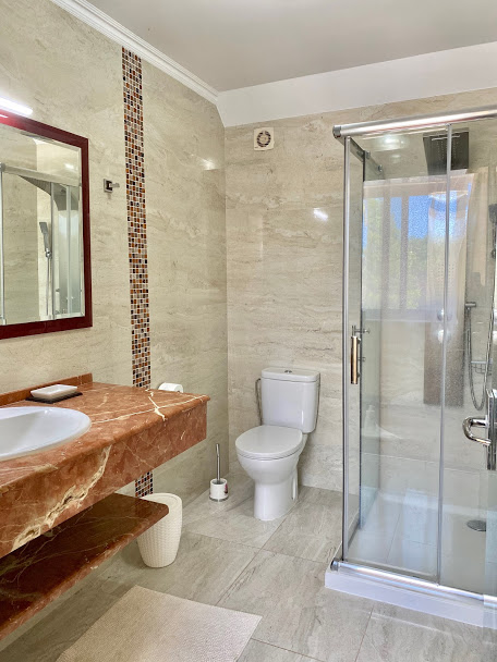 Ubicada en una generosa parcela de 3.709 m², la villa ofrece 426 m² construidos de elegancia y confort. En la planta principal, se encuentra un amplio salón de estilo sofisticado, una cocina moderna totalmente equipada, dos cómodos dormitorios, dos baños completos y un aseo de cortesía. Tanto el salón como la cocina se abren a una terraza cubierta de 40 m², perfecta para relajarse y disfrutar del clima privilegiado y las vistas infinitas al mar.