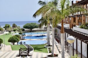 El complejo cuenta con ascensores, 5 piscinas, zonas ajardinadas y varios solarios con tumbonas.