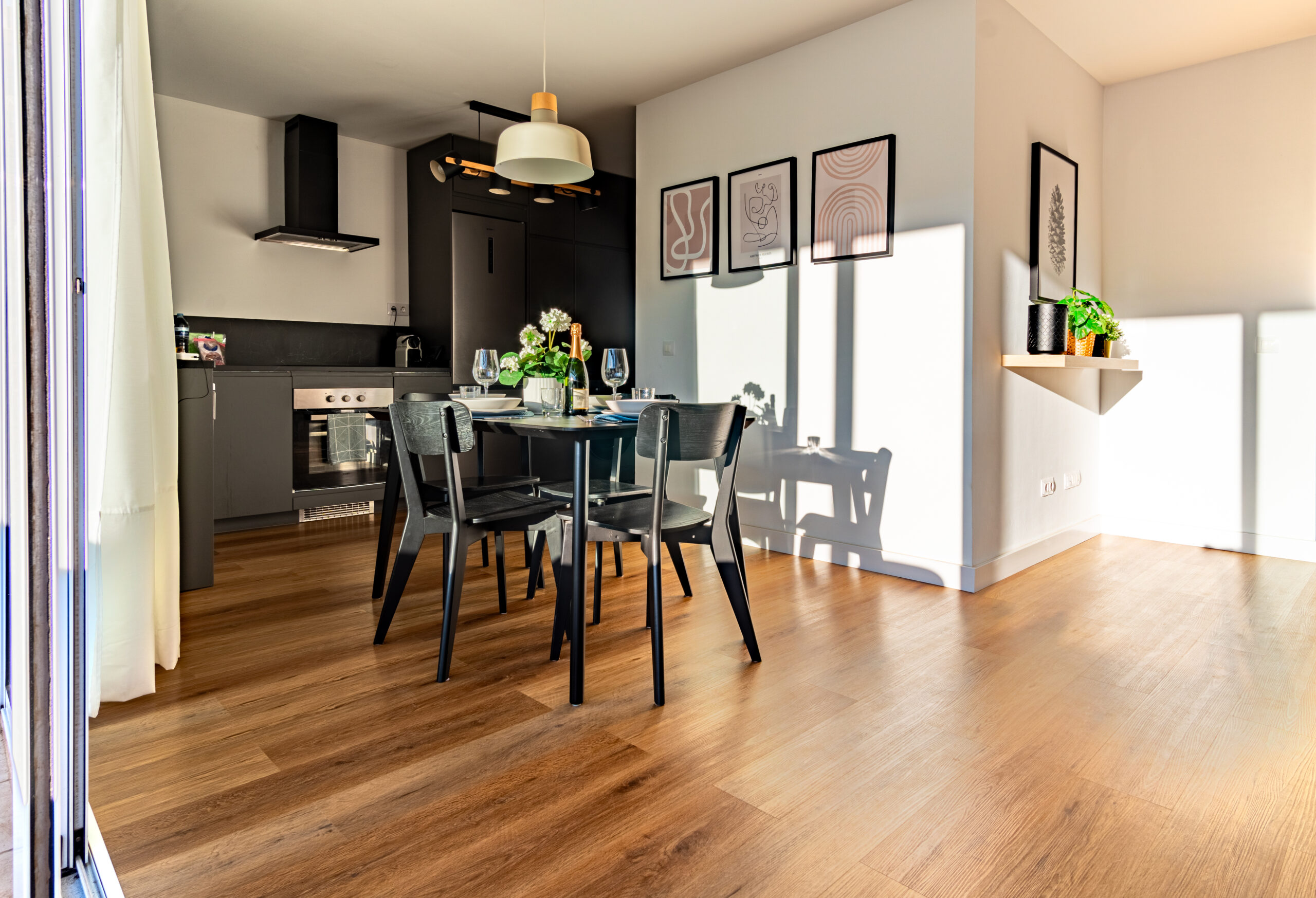 Vamos a dar un paseo por ahí. A la entrada nos acoge un amplio salón comedor con zona estar muy acogedora y moderna cocina totalmente equipada. Seguimos por un pasillo a derecha y nos encontramos en la zona distribuida en dos luminosos y espaciosos dormitorios cada uno con su armario empotrado, dos baños acondicionados con ducha y una terraza cubierta. Decorados con mucho gusto cada estancia de este hermoso hogar transmite comodidad y tranquilidad.
